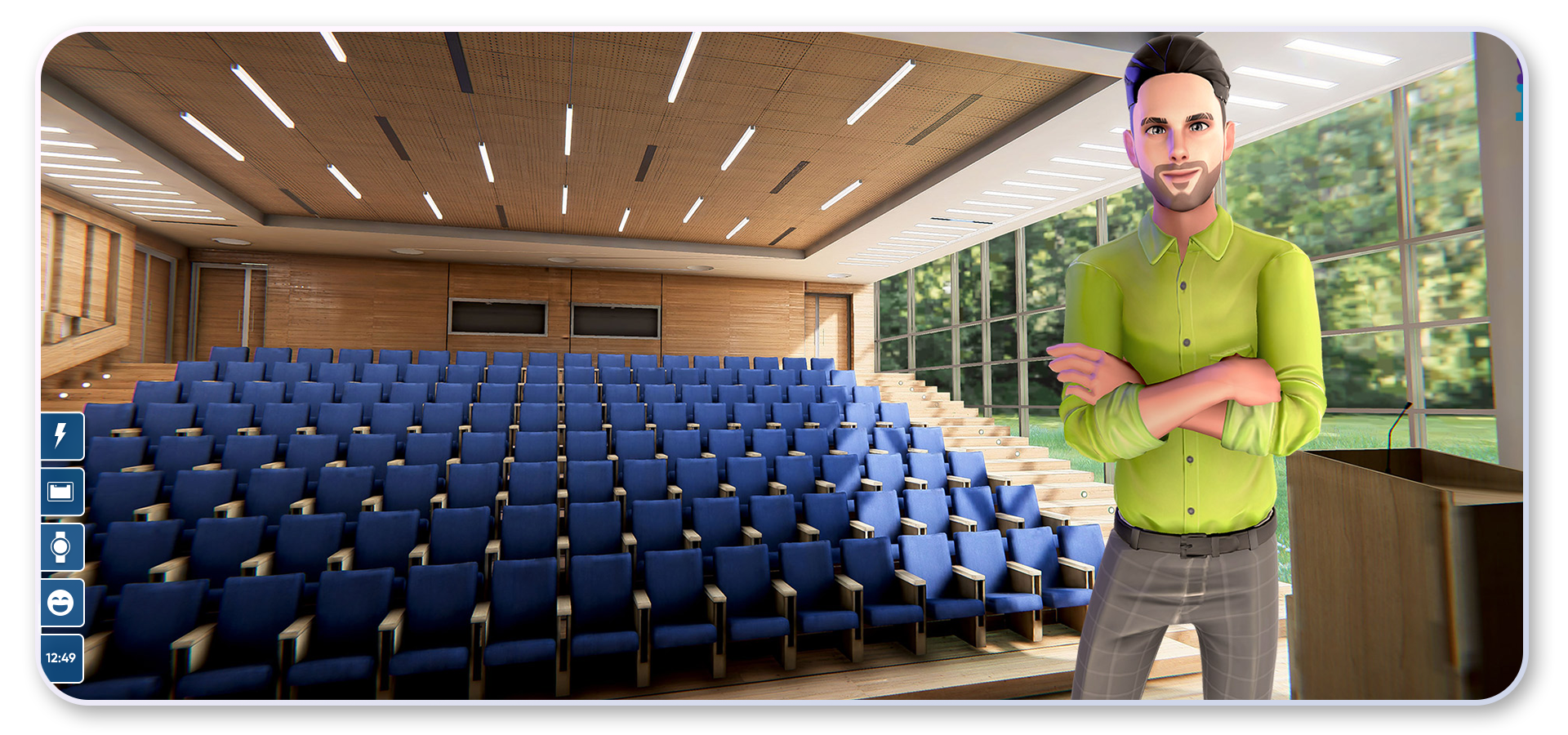 During meetings attendees would be automatically seated, able to look around simply by moving their mouse or using their touch screen.